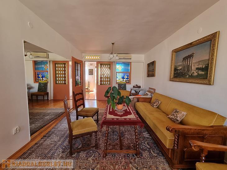A legfelső emeleti fekvésnek köszönhetően az ingatlan rendkívül világos, csendes és intim hangulatú, ugyanakkor néhány perc sétával elérhető minden fontos szolgáltatás, üzlet és kulturális program. Ideális választás lehet nagyobb családoknak vagy azoknak, akik otthoni munkavégzéshez keresnek tágas, nyugodt környezetet.