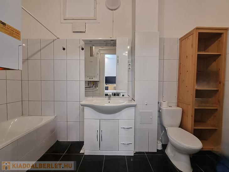 Kiadó egy teljesen felújított, igényes lakás a Veres Pálné utcában. Az ingatlan nappaliból és két külön nyíló hálószobából áll, tágas terekkel és magas belmagassággal (3,6 m), ami különösen világos és levegős hangulatot biztosít. A fűtést gázkazán biztosítja, melyhez saját mérő tartozik. Alacsony közös költség: 10 000 Ft.