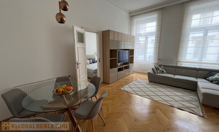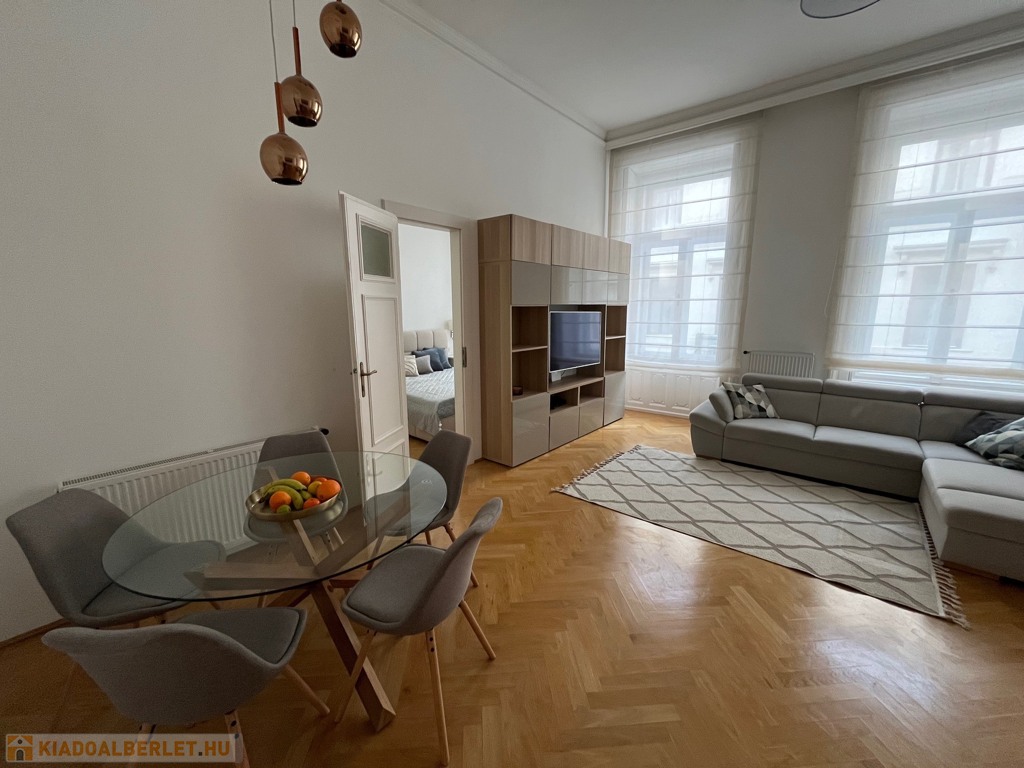 Egy 100 m²-es, gyönyörűen felújított lakásról van szó, egy elegáns, műemlék jellegű ház 2. emeletén (lifttel).