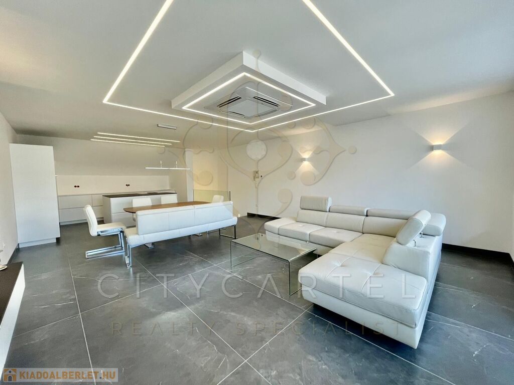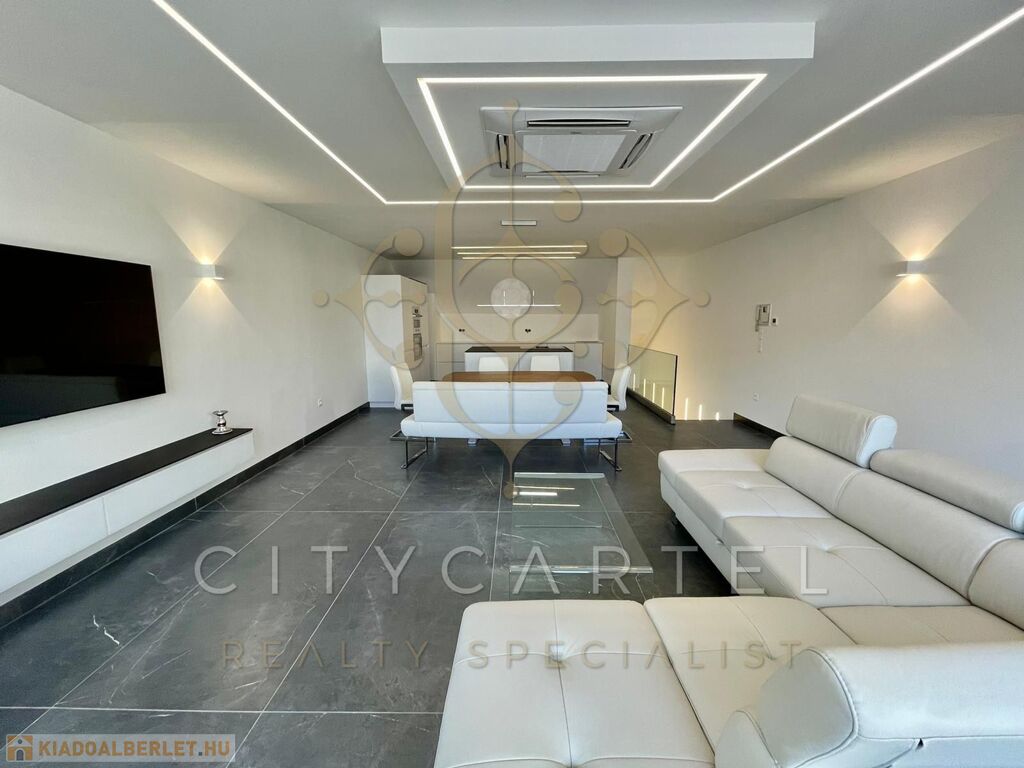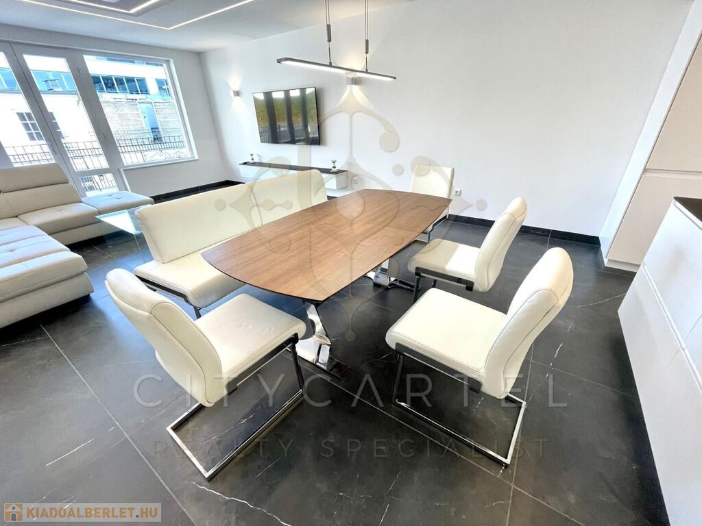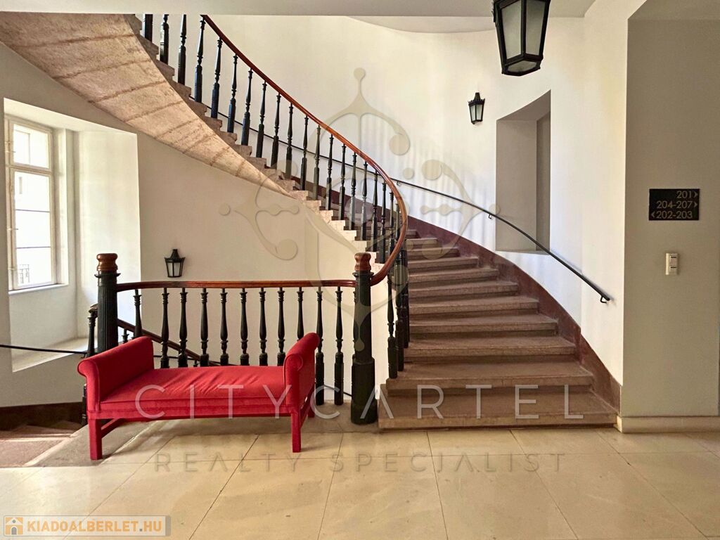 Budapest V. kerületében, a Széchenyi tér közvetlen közelében, exkluzív apartmanházban kiadó egy belső kétszintes 116 nm-es, 4. emeleti, teraszos, klimatizált luxuslakás.