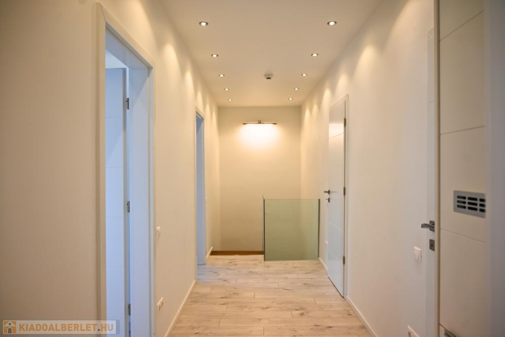 Felső szint: Közös tér, három külön nyíló, világos hálószoba, mindegyik a Vörösmarty térre néző panorámával