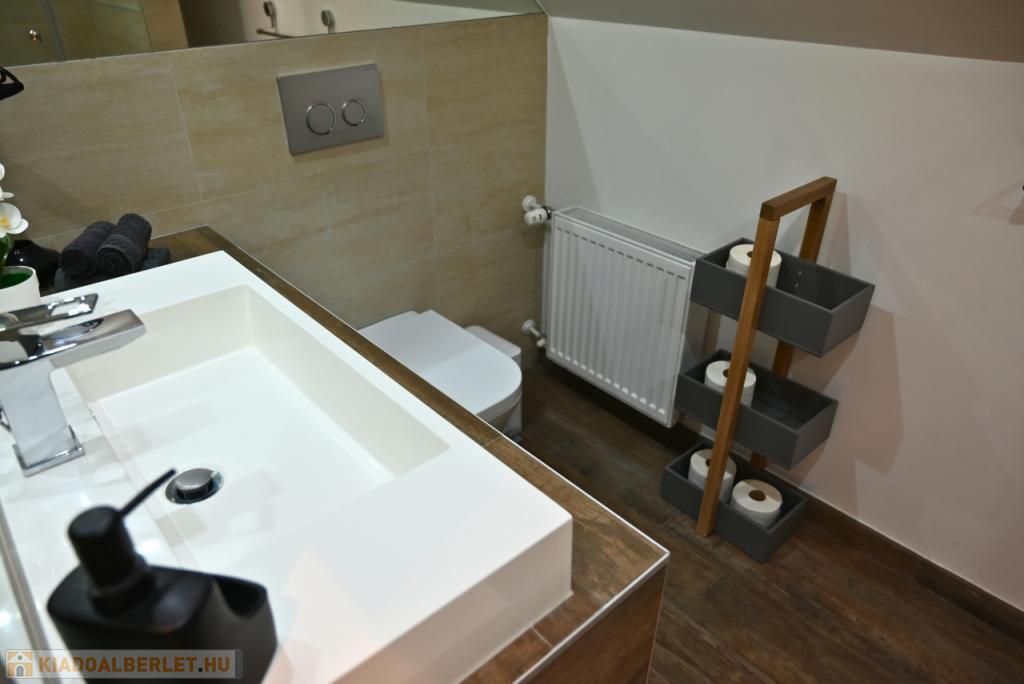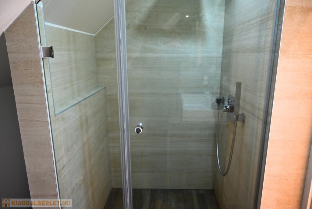 Fürdőszoba: esztétikus burkolatú, zuhanyzós, WC-vel