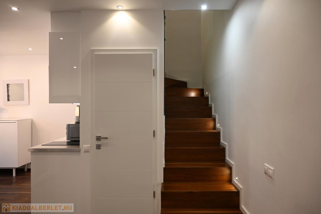 A belváros egyik legexkluzívabb részén, közvetlenül a Vörösmarty tér szomszédságában kínálunk bérbe egy 100 m-es, belső kétszintes, teljesen berendezett és modern lakást.