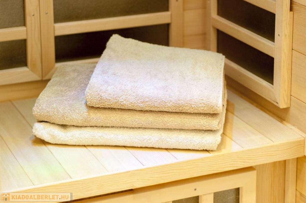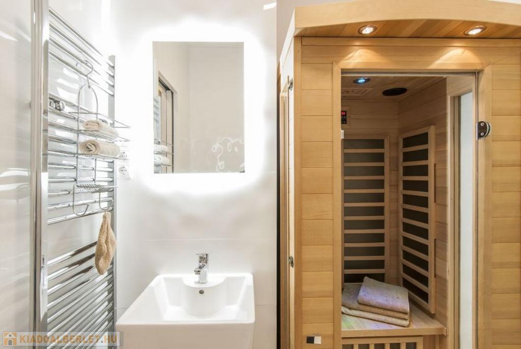 Az infra szaunában a stressztől megszabadulhat, az erkélyről a Parlamentben gyönyörködhet.