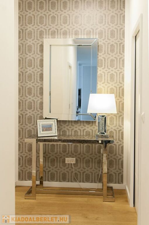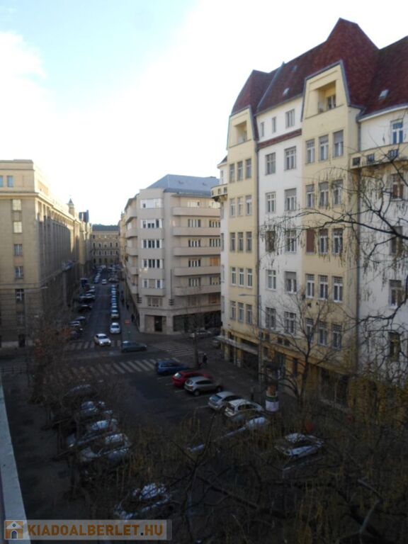 Kiadó Budapest V.ker. Szalay utcában, rendezett liftes ház 4.emeletén egy 92 nm-es, 3 szobás, panorámás, erkélyes (6 nm-es), légkondicionált, riasztós, bútorozott, gépesített, SZÁMLAKÉPES lakás.