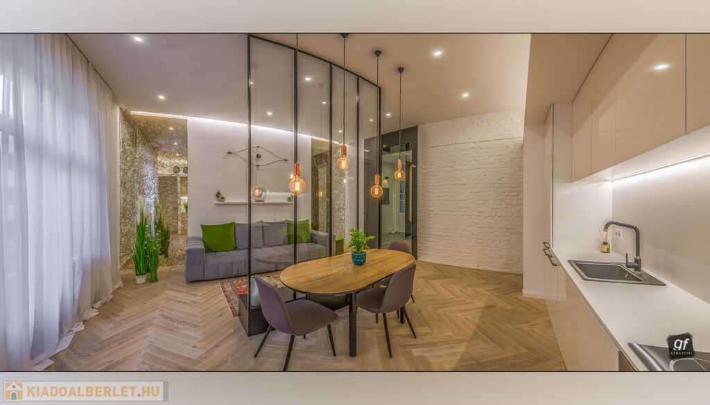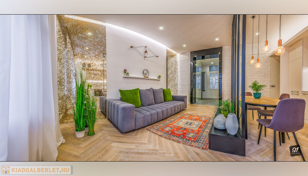 A lakás bútorozott és teljesen berendezett – minden, ami a képeken látható, a bérlő rendelkezésére áll.