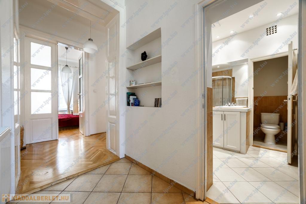 Kiadó 16 nm-es SZOBA Budapest, VI. kerület Hajós utcában minimum 6 hónapra egy szépen felújított 65 m2-es, amerikai konyhás nappalis + 2 hálószobás, utcai nézetű, 2. emeleti lakás.