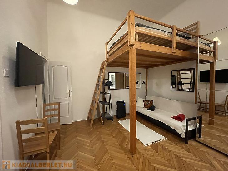 A Nyugati tér közvetlen közelében, a VI. kerület szívében kiadó egy földszinti, frissen felújított, galériás garzonlakás.