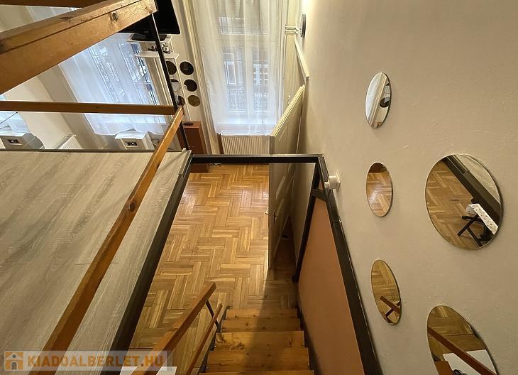 Budapest VI. kerületében, a Szondi utcában, rendezett és csendes társasház 3. emeletén kiadó egy 43 m²-es, kiváló állapotú, másfél szobás, galériás lakás.