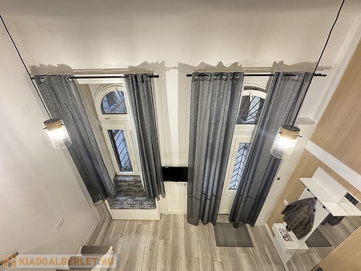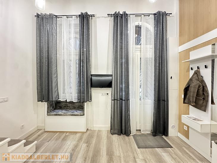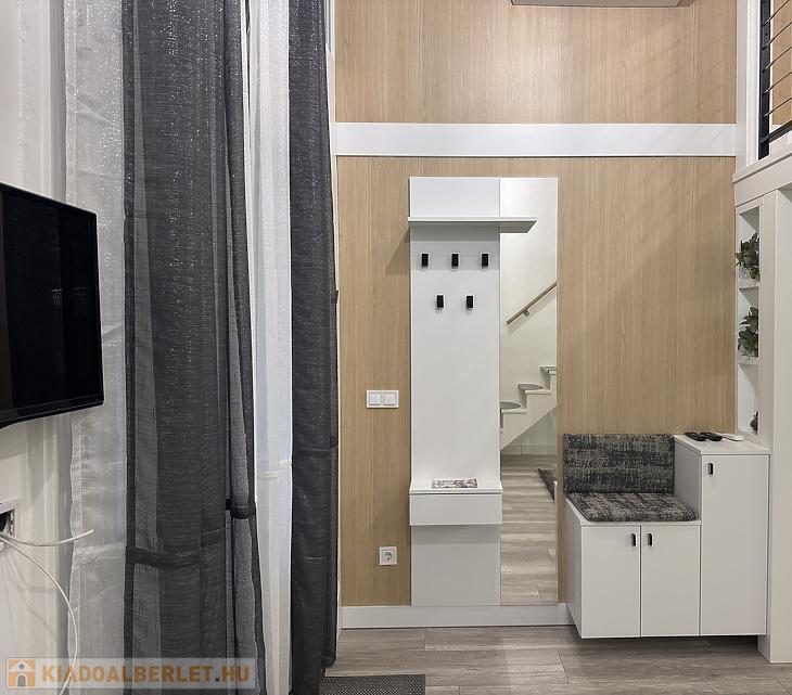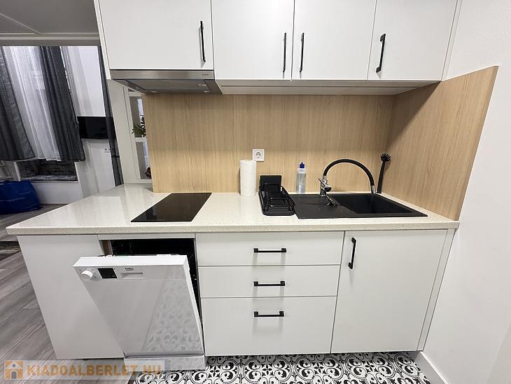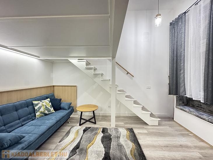 Kiadó egy teljes körűen frissen felújított, modern földszinti lakás amerikai konyhás nappalival és galériával az Eötvös utca 48.-ban, egy szép, csendes társasházban. A felújítás óta még senki nem lakott benne, minden berendezés és bútor vadonatúj.