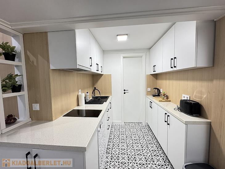 A lakás teljesen bebútorozott és gépesített, azonnal költözhető.