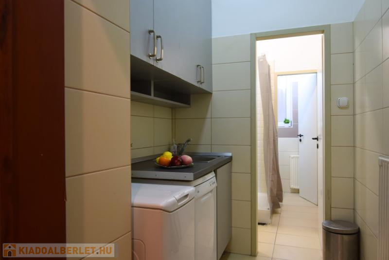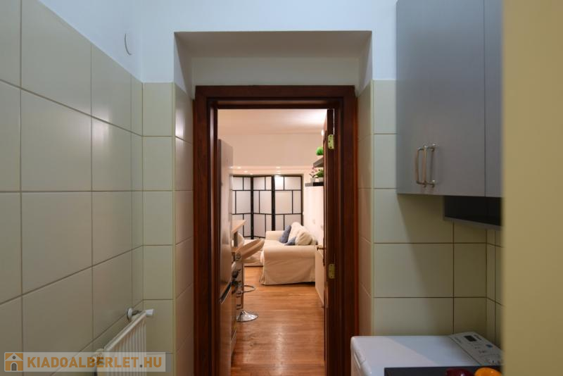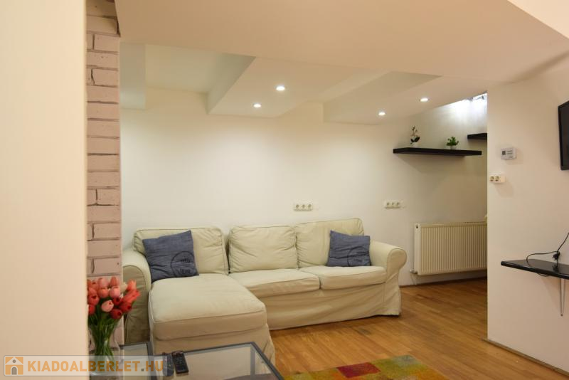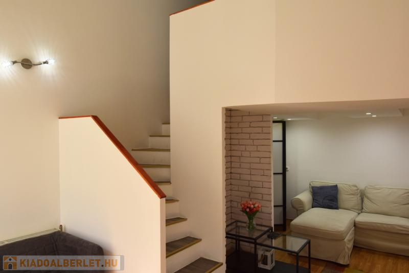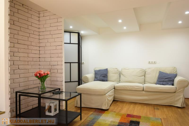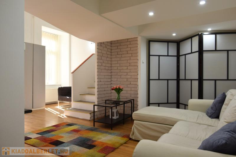 Kiadó Budapest, VI. kerület Paulay Ede utcában (a Deák tér és az Andrássy út közelében), rendezett, liftes ház I.emeletén, igényesen FELÚJÍTOTT, 54 nm-es, 2+1 szobás, galériás (15,5 nm-es) bútorozott, gépesített, KLÍMÁS, cirkófűtéses, lakás.