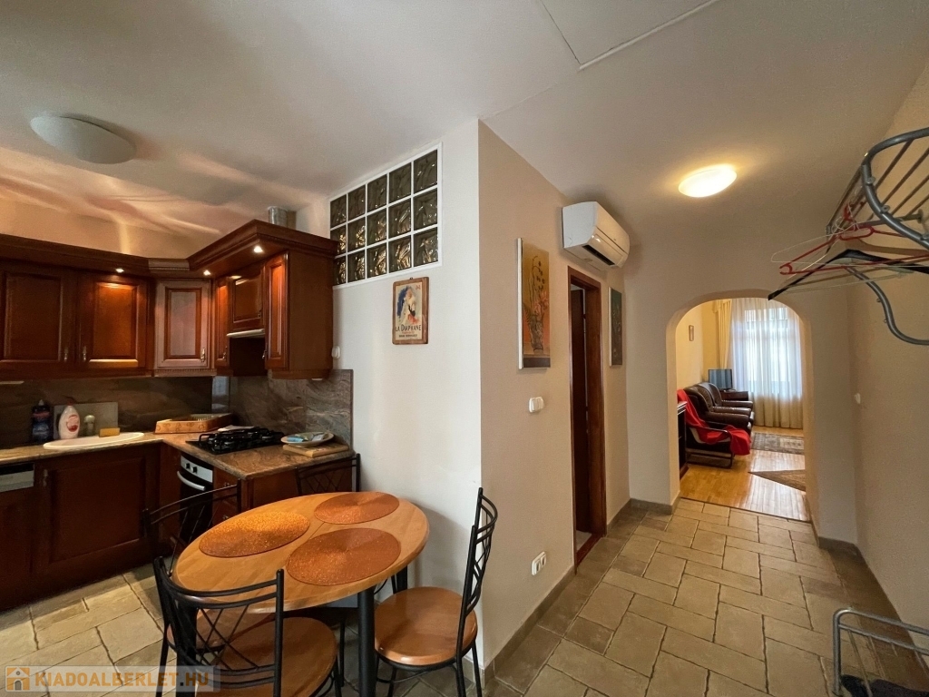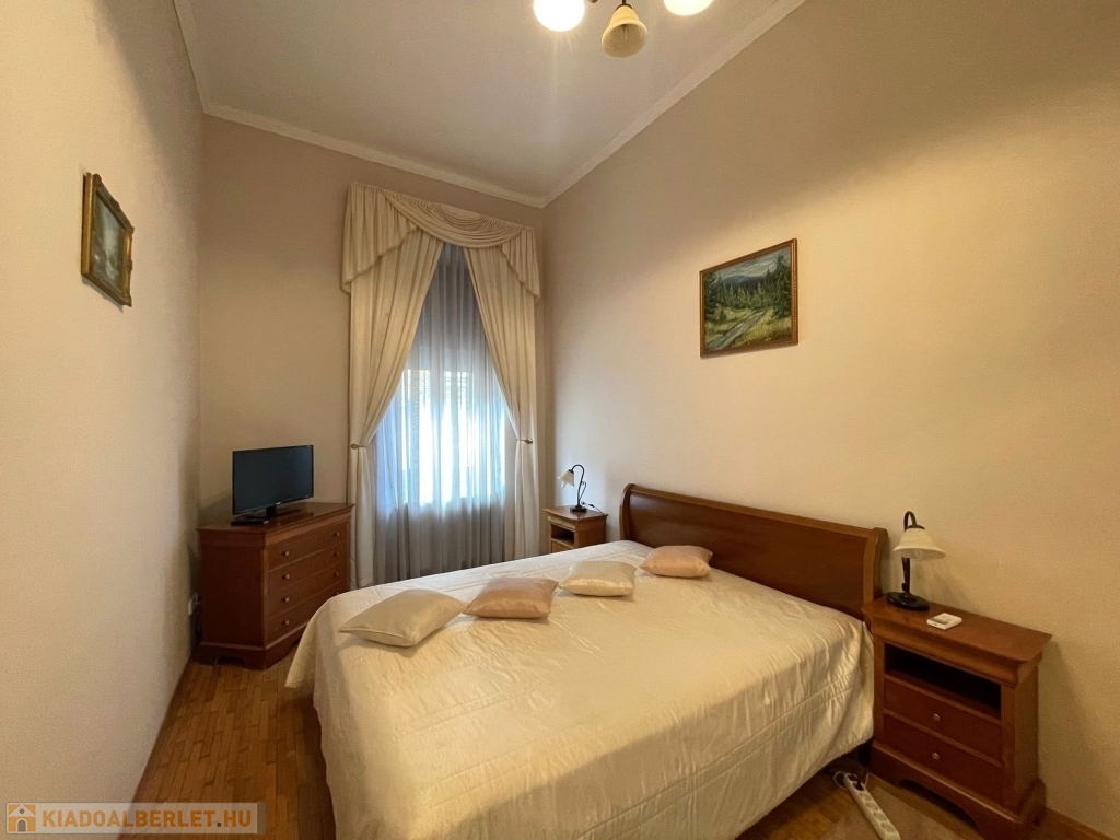 VI. kerületben, a Podmaniczky utcában, közel a Nyugati Pályaudvarhoz kiadó egy 65 m2-es, nappali plusz hálószobás, 3.emeleti, utcai nézetű lakás. Az ingatlan utcai nézete ellenére, csendes, a nyílászárók és a redőnyök cseréje megtörtént, a ház rendezett, liftes ház. A fűtést gázcirkó készülék valamint hűtő-fűtő klíma biztosítja. A gázkazán 3 éves, a hűtő-fűtő klíma most lett tisztítva. A közös költség 22.000 Ft, az ingatlanban minden egyedi mérős. A lakás igényesen bútorozott, gépesített, -gáztűzhely, sütő, nagy hűtőszekrény, mosogatógép, mosógép, szárítógép- rendelkezésre áll. A környék felszereltsége kimagasló.A közelben patika, posta, éttermek, a West-end bevásárlóközpont, az M3-as metró, a 4-6-os villamos. Az ingatlan minimum 1 éves időtartamra kiadó, két havi kaucióval, egy havi bérleti díjjal azonnal költözhető. Az ingatlanban kisállat tartása valamint dohányzás nem lehetséges.