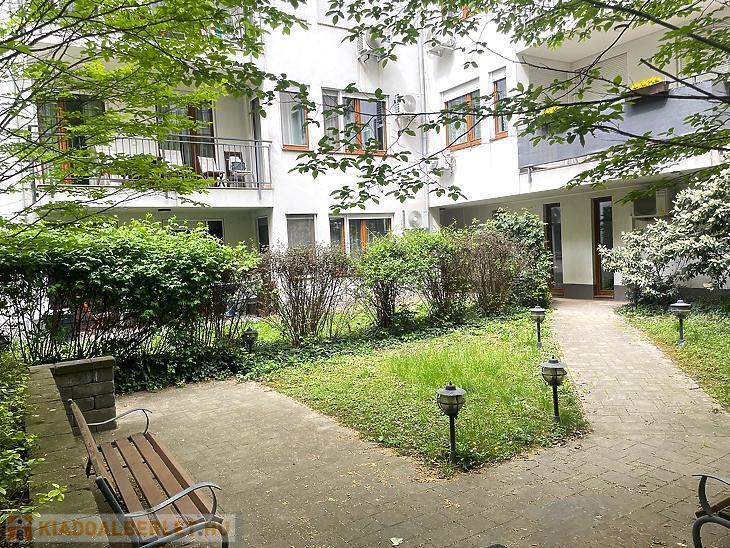 A társasházhoz egy szép, rendezett belső udvar tartozik, amely nyugodt pihenésre, olvasásra vagy akár egy kávézásra is kiválóan alkalmas – igazi ritkaság a belvárosban.
