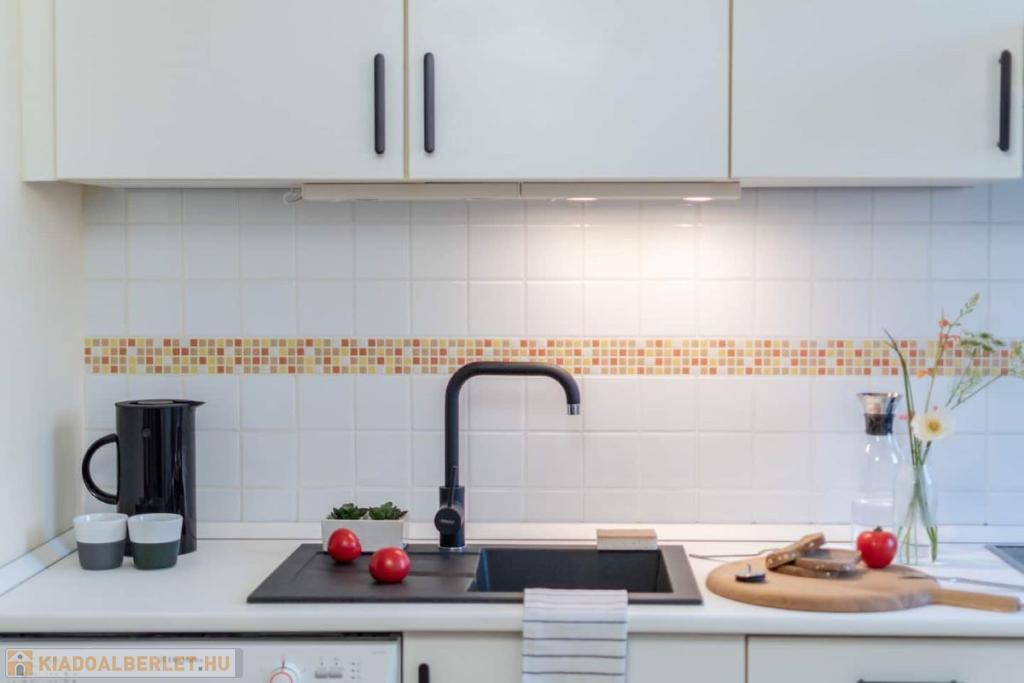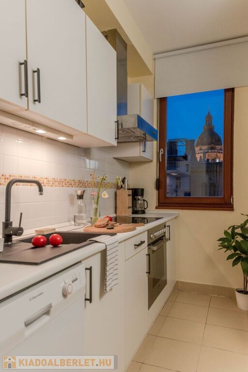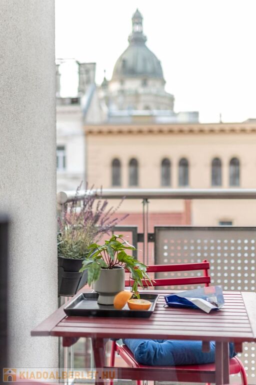 Kiadó Budapest VI.ker. Paulay Ede utcában, rendezett, liftes, portaszolgálatos ház 5. emeletén, egy 50 nm-es ÚJSZERŰ, amerikai konyhás + nappalis, 1 hálószobás, ERKÉLYES, bútorozott, gépesített, összkomfortos lakás.