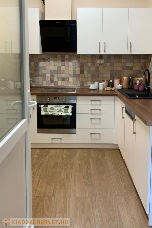 A konyha teljesen gépesített (mosogatógép, mosógép). A lakás biztonságát biztonsági bejárati ajtó és okos zár növeli.