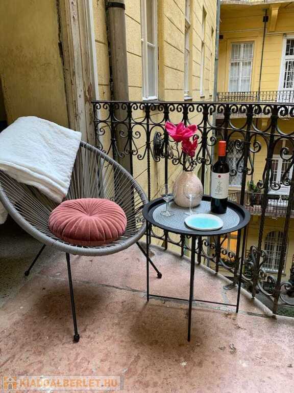 Kiadó a VI. kerület egyik legkedveltebb részén, a Jókai tér 1. szám alatt, egy 45 m²-es, körfolyosós, 2. emeleti, nappali + hálószobás lakás liftes társasházban.