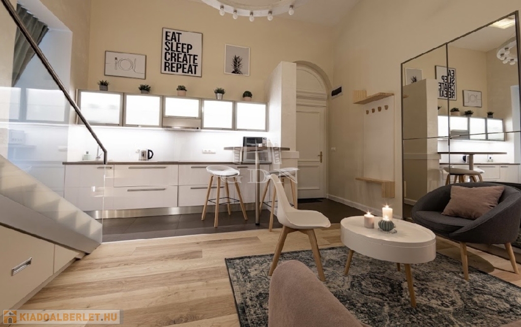 Kiadó az Ó utca központi, mégis csendes részén egy 34 m²-es, belső állógalériás ingatlan, amely lakásként és irodaként egyaránt kiválóan használható.