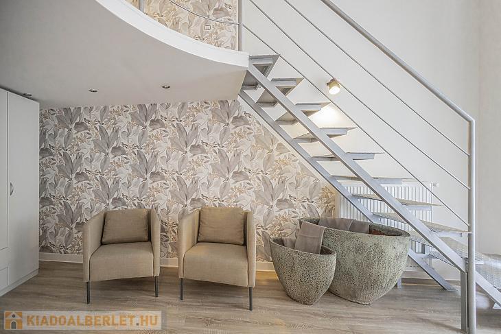 A tágas nappali étkezővel és nagy ablakokkal vár, amelyhez egy hangulatos galériás háló, valamint egy különálló, teljes értékű hálószoba kapcsolódik. A teljesen felszerelt konyhában sütő, főzőlap, mosogatógép, nagy hűtő, mikrohullámú sütő és mosógép is rendelkezésre áll. Két modern, zuhanyzós fürdőszoba biztosít kényelmet több fő számára is. A lakás légkondicionált, és január 5-től költözhető.