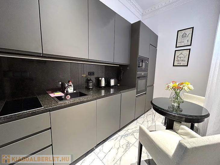Budapest VI. kerületében, a Dessewffy utca 21. szám alatt kiadó egy 46 m²-es, 1. emeleti, teljes körűen felújított, prémium minőségben berendezett és gépesített lakás.