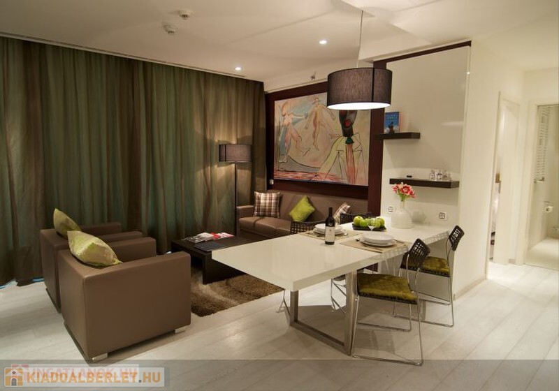 Budapest központjában a Blaha Lujza térnél, diplomáciai helyszínek közelében (Andrássy út, Stefánia út) múlt század elején épült nívósan felújított 5 csillagos palotában minimál stílusú luxuslakás hosszabb-rövidebb távra is kiadó (akár 1 hónap is). A 65 m2-es Grand Suite lakosztály áll egy tágas nappaliból, hálószobából (királyi ágymérettel), gardrobból, fürdőszobából, étkezőből, és egy olasz stílusban berendezett, teljesen felszerelt konyhából (hűtő, mélyhűtő, mikrohullámú sütő, kávé- és teafőző gépek, edények, tányérok, evőeszközök, poharak). A lakás légkondicionált, felszerelt egy nagy síkképernyős TV-vel, műholdvevővel, internetkapcsolattal, egy laptop méretű széffel, hajszárítóval és saját telefonvonallal. A bérleti díj tartalmazza a heti kétszeri házvezetést, a spa használatát (úszómedence, gőzfürdő, szauna, fitnesz terem) és az állandó Wi-Fi elérést. Igénybe vehető az épület étterme, kávézója, szalonja, éjjeli bárja és recepciója.