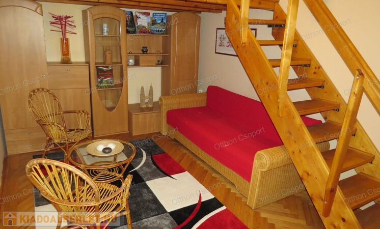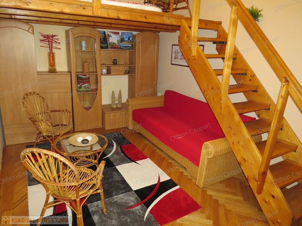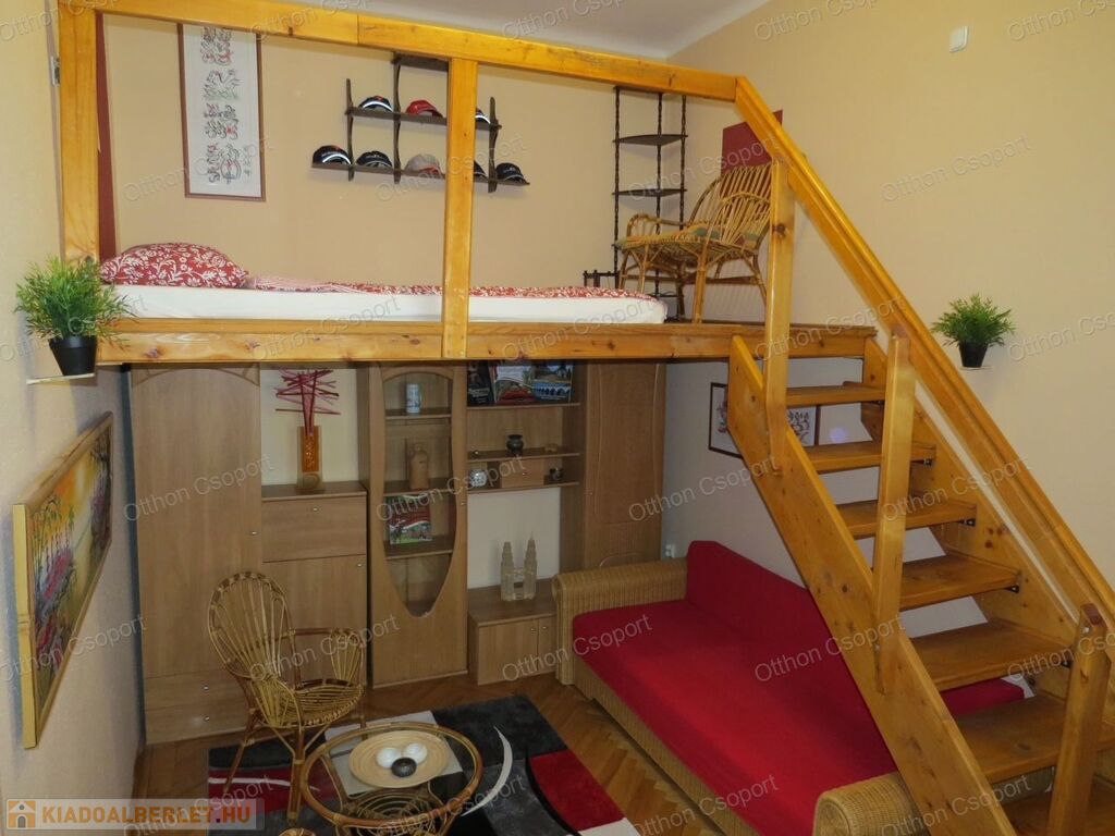 Kiadó a 7.kerület,. Cserhát utcában egy első emeleti (LIFT NINCS), 29 négyzetméteres, teljesen gépesített és bútorozott, galériás lakás.