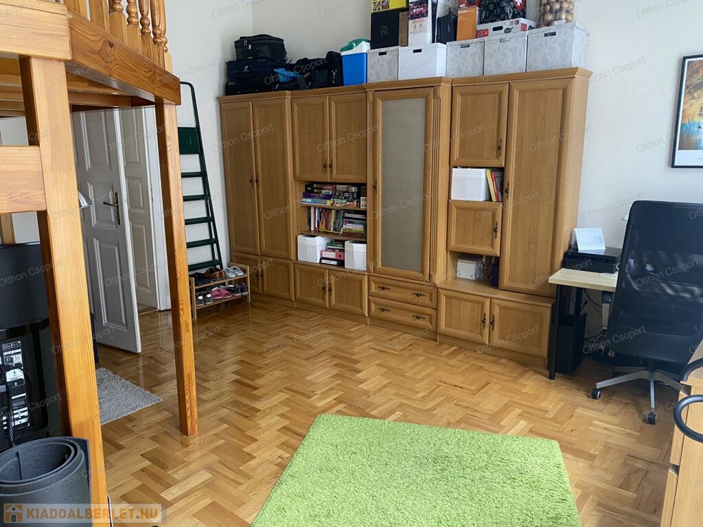 Kiadó a 7.kerületben, a Huszár utcában egy 1.emeleti, 40 négyzetméteres, galériás lakás. Részben gépesített és részben bútorozott. A gépek közül a hűtőszekrény hiányzik, a bútorok közül a nappaliba kell egy ülőgarnitúra, dohányzóasztal, TV állvány, illetve az ágyhoz egy matrac.