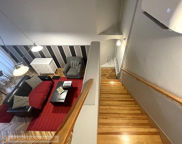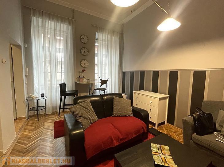 Budapest szívében, a VII. kerület egyik legkedveltebb részén, a Király utcában kiadó egy 1. emeleti, világos, 34 m²-es, bútorozott és teljesen felszerelt garzonlakás állógalériával.