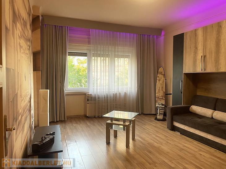 A lakás bútorozott és gépesített,egy nagy, jól berendezett szobából áll, amelyben egy kényelmes, kihúzható kanapé található. Az étkezős előszoba ideális akár otthoni munkavégzéshez is, a külön konyha pedig teljesen felszerelt, így azonnal használatra kész. A fürdőszoba tágas és kádas kialakítású.