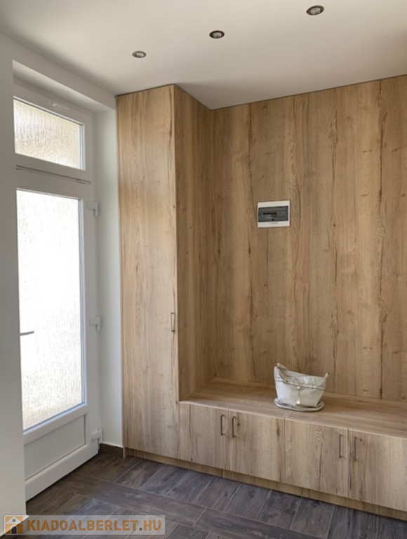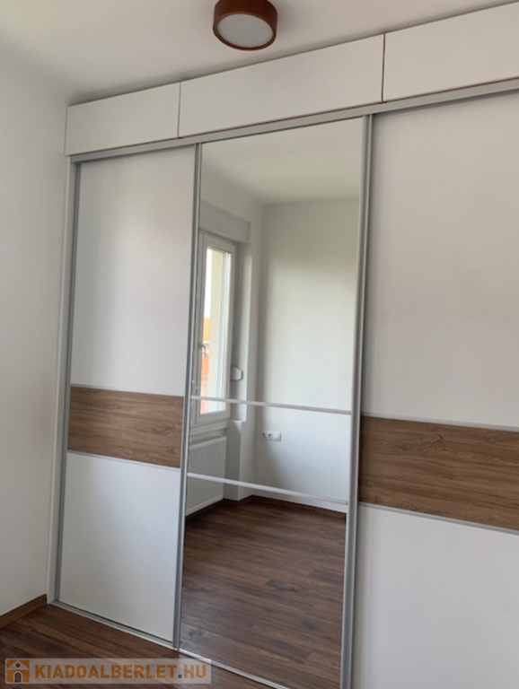A lakás csendes-világos, gépesített, részben bútorozott, de hatalmas beépített szekrényekkel rendelkezik.