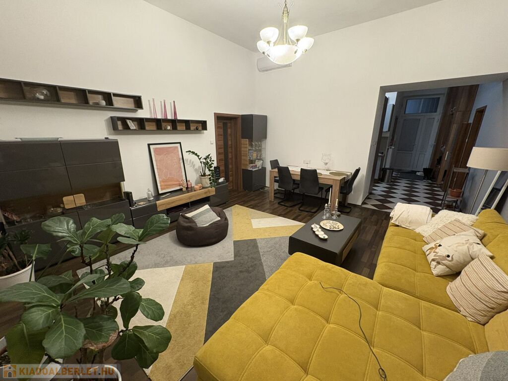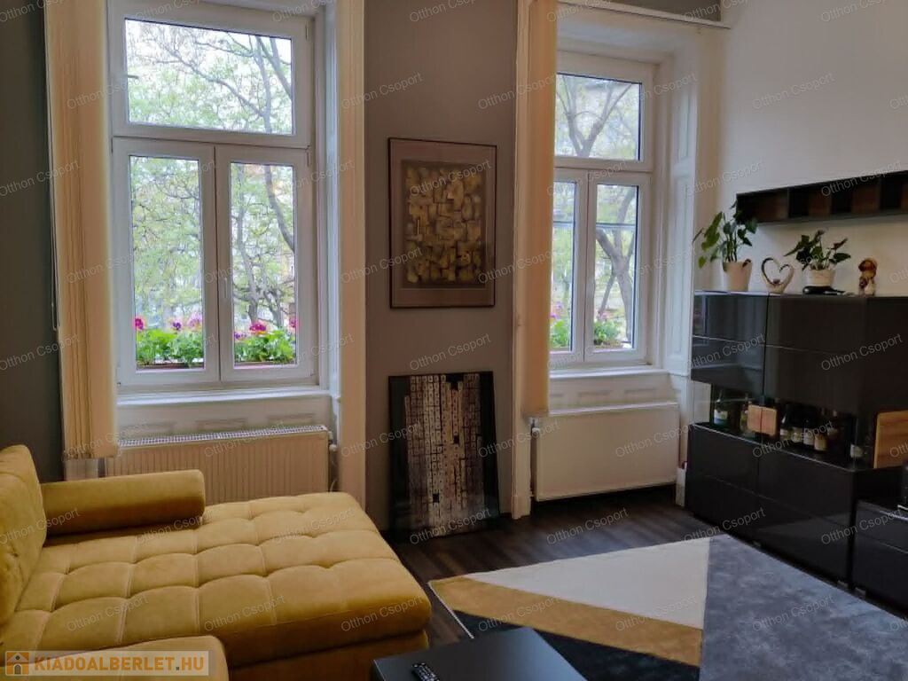 Kiadó egy 72 négyzetméteres, igényesen felújított és berendezett, nappali plusz 2 hálószobás lakás a Blahától 5 percre, az Almássy téren. Az első emeleti lakás (lift nincs) ablakai a térre néznek. Az egyik szoba galériázott.