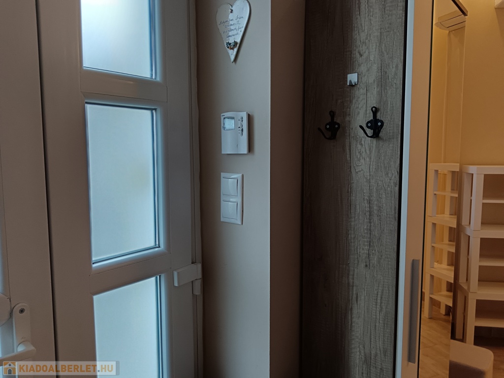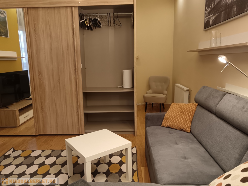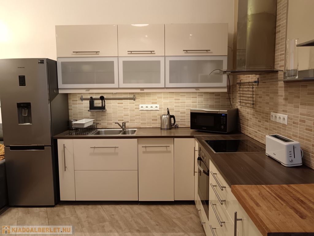 Kiadó lakás egy liftes ház 4. emeletén, csendes, belső udvarra néző, teljesen felújított, 49 m2-es lakás. A lakás teljesen gépesített, bútorozott, felszerelt. Helyiségek: nappali-konyha, külön nyíló hálószoba, hálófülke, tárolókamra, fürdőszoba, külön WC. Biztonsági ajtó, klíma, redőnyös ablakok, saját víz-, gáz-, villanyóra biztosítja a kényelmet. A lakásba háziállat nem hozható, dohányzás nem megengedett.