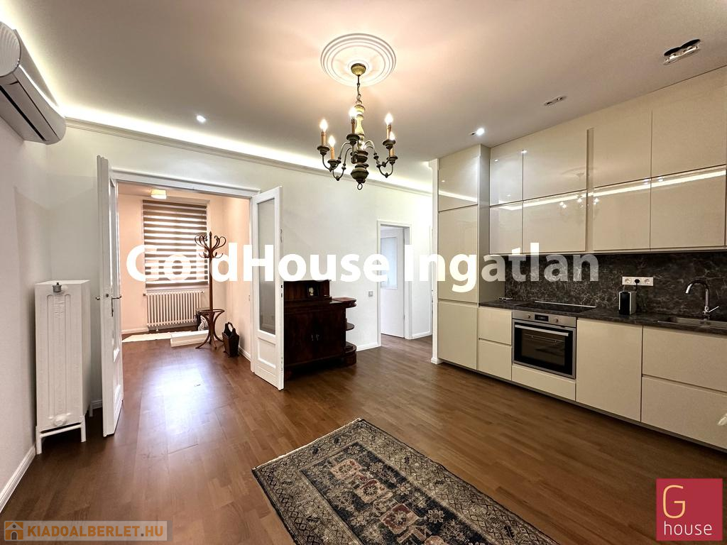 VII. kerületben, a Károly körúton, azonnal költözhető, teljesen felújított, 100m²-es, 3 hálószobás, amerikai konyhás, duplakomfortos, klímás lakás hosszú távra kiadó. LAKÁS CÉLJÁRA vagy akár IRODÁNAK is ideális.