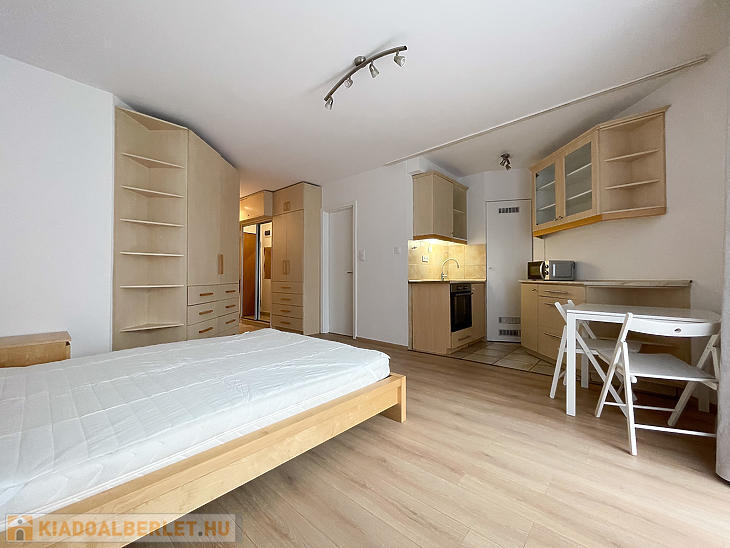 Az ingatlan egy szobás, kádas fürdőszobával és kamrával rendelkezik, illetve több beépített ruhásszekrény is található a lakásban.