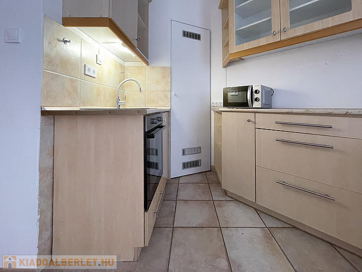 Csarnoknegyedben, egy 2006-ban épült, lifttel rendelkező társasház 1.emeletén, erkélyes lakás kiadó.