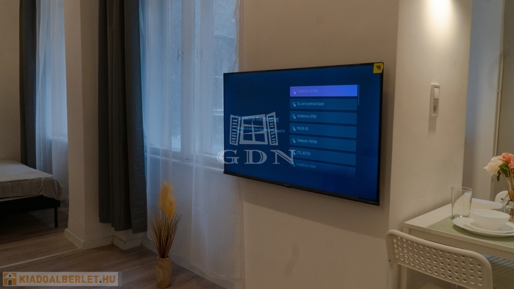 Budapest VIII. kerületében, a Népszínház utcában kiadó egy 25 m²-es, teljesen bútorozott garzonlakás. Az eszközök szintén teljesen újak, illetve még használva sem voltak.