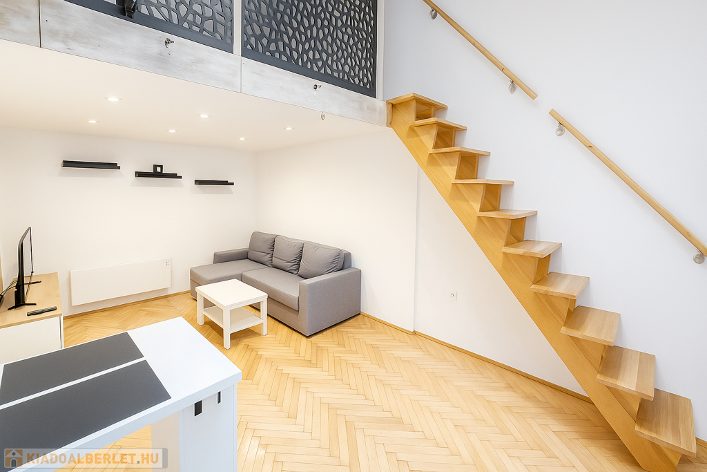 Exkluzív ajánlat a VIII. kerület szívében – egyedi galériás lakás kiadó a Nagy Fuvaros utcában!