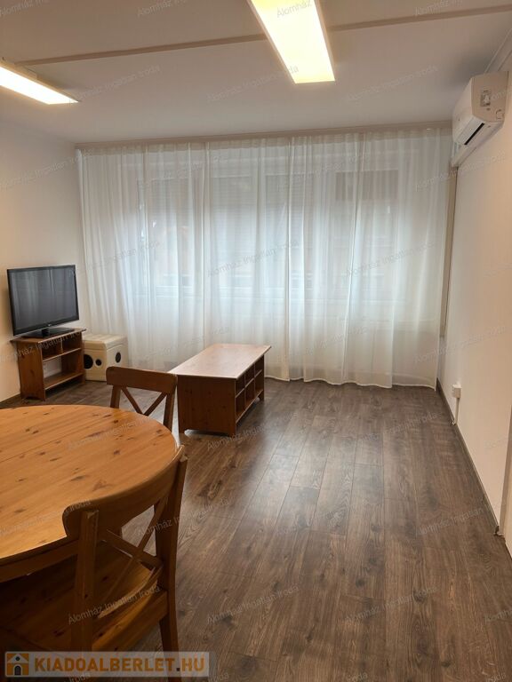 Hosszú távra (min. 12 hónap) kiadó egy teljes körűen felújított, klimatizált, igényesen berendezett, 4. emeleti lakás liftes, rendezett társasházban.