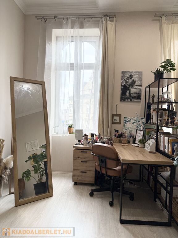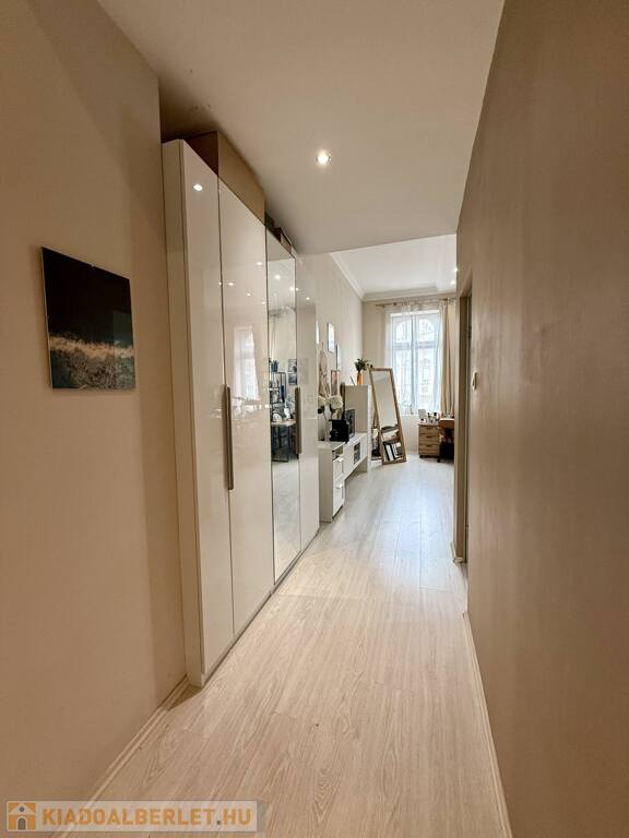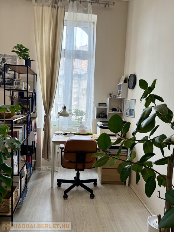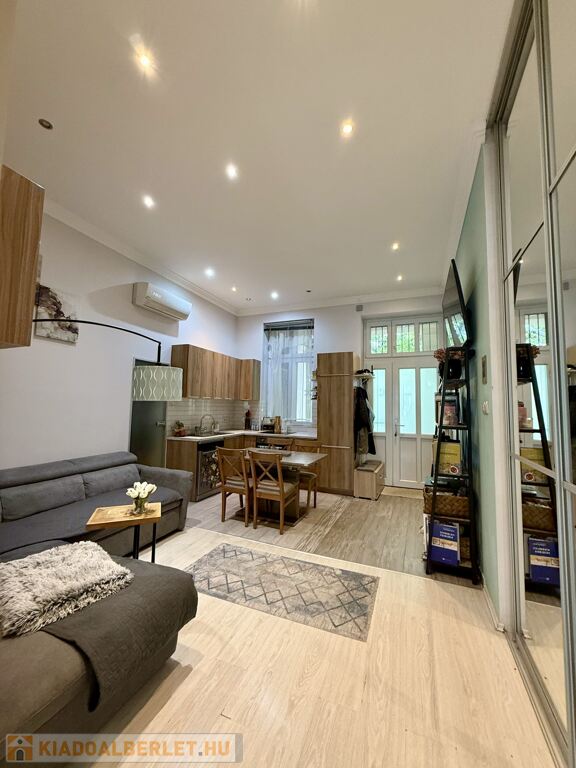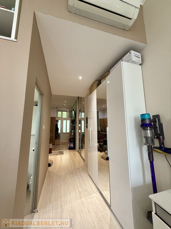 Kiadó Rákóczi úthoz közel a Fiumei úton egy 3 emeletes lift nélküli téglaépítésű társas házban lévő galériás, fürdőkádas, amerikai konyhás nappali, spejzzal, bútorozott, gépesített lakás.
