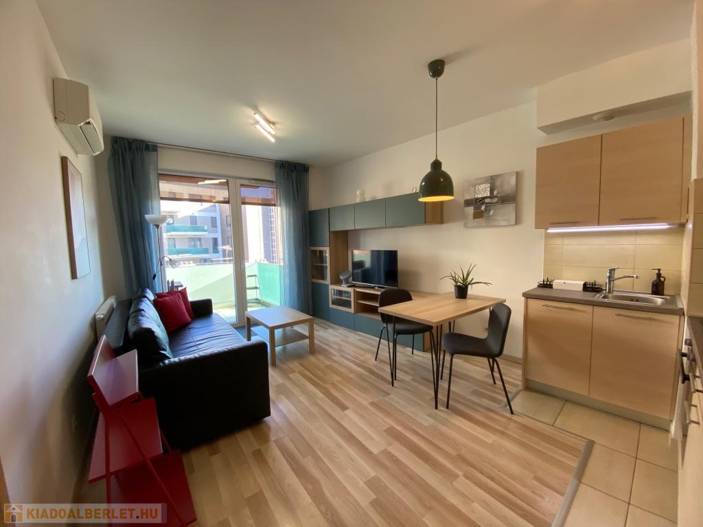 A Corvin sétány egyik közkedvelt épületében, a Park Residence-ben, 2017-ban épült, modern társasházban kínálunk kiadásra egy bútorozott, amerikai konyhás + hálószobás, erkélyes lakást.