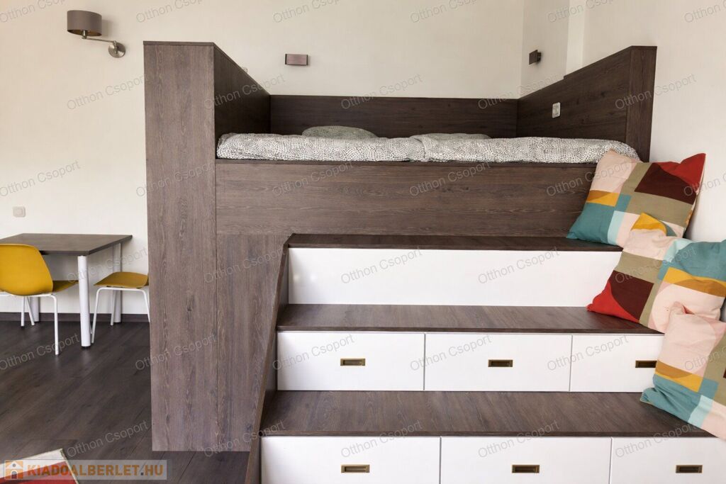 • Galériás kialakítás → extra tér + franciaágy