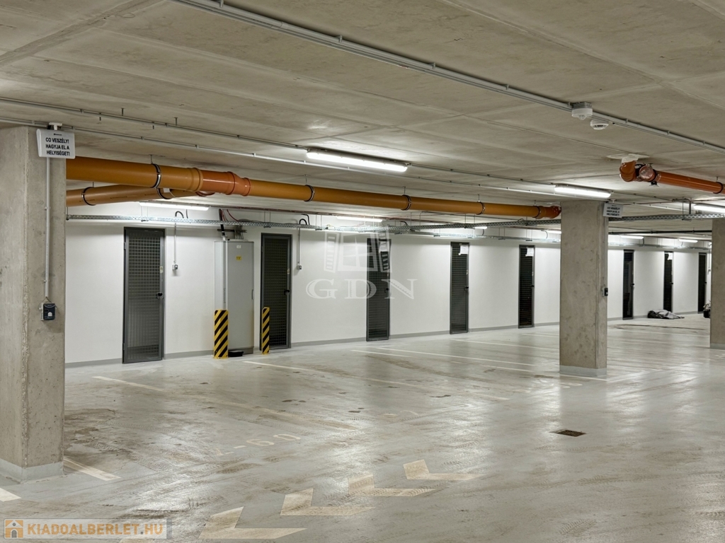 A z ingatlanhoz tartozik továbbá egy 3 m²-es saját tároló, valamint egy elektromos autó töltéséhez is alkalmas parkolóhely a mélygarázsban, – mindkettő a bérleti díj részét képezi, külön költség nélkül.