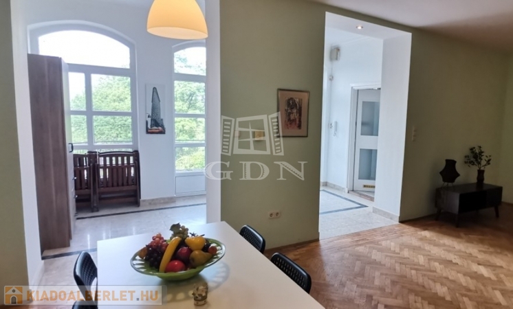 A XII. kerületben, jó tömegközlekedéssel rendelkező, csendes környéken kiadó egy 2 szobás, kertre néző lakás 15 nm-es panorámás terasszal.