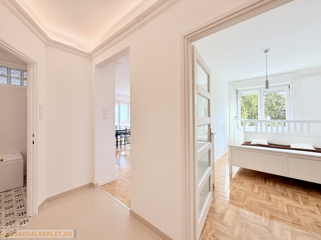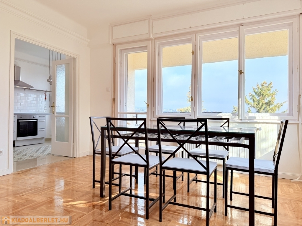 XII. KISSVÁBHEGY egyik legkedveltebb csendes mellékutcájában, a Kis-Sváb-hegy Természetvédelmi Terület és a Városmajor park között, néhány perc sétára a tömegközlekedéstől, LEGFELSŐ emeleti, 78 nm hasznos alapterületű, nappali + két hálószobás, keleti fekvésű, TELJESEN felújított, BÚTOROZOTT lakás, rózsadomb felé néző panorámás terasszal, tárolóval kiadó!