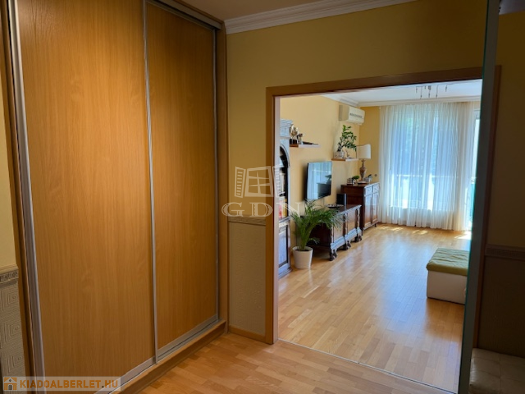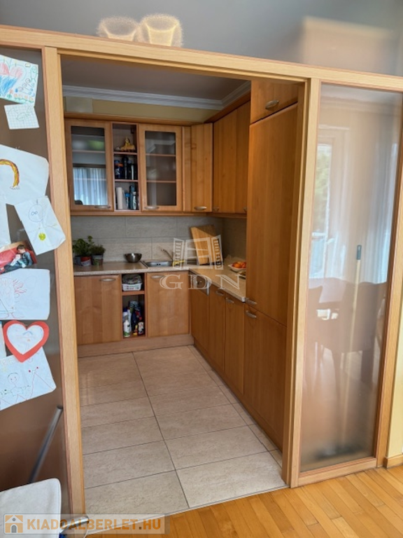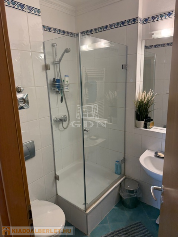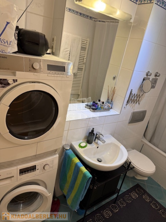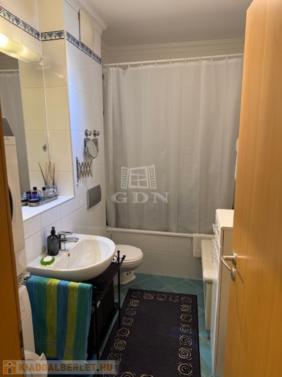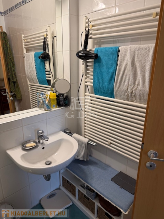 A lakás dupla fürdőszobával, gépesített konyhával és részleges bútorozottsággal rendelkezik, a képeken látható bútorok egy része a jelenlegi bérlő tulajdona.