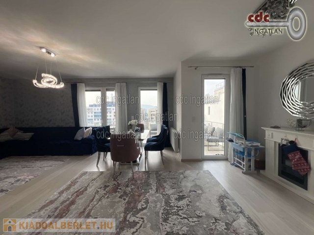 MARINAPARTON KIADÓ, ÚJSZERŰ, ELEGÁNS LUXUSLAKÁS KIADÓ! XIII. kerületben kínáljuk bérbevételre ezt a VII. emeleti, 122 m2-es + 30 m2-es teraszos, 4 szobás, amerikai konyhás, 2 fürdőszobás, egyedi mérésű házközponti fűtéses, egész nap napfényben úszó, csendes, újszerű állapotú lakást 2 db teremgarázs beállóval. Az ingatlan kitűnő elosztású, a szobák külön nyílnak, teraszkapcsolatosak, a konyha gépesített, magasfényű hófehér, az egész lakás elegáns, modern bútorokkal van berendezve. A ház 9 emeletes, liftes, újszerű állapotú, csodaszép belső kerttel és nagyon jó lakóközösséggel. A környék varázslatosan gyönyörű a Duna-part csodás lehetőségeket ad a víz és a természet szerelmeseinek. Szuper közlekedés, M3-as metró, buszok, Duna pláza. Az ingatlan 03.15-től költözhető. Közös költség 200 Euro / hó. A lakáshoz tartozik takarító, amelynek díját a bérlő fizeti. Minimum egy évre bérelhető. Két havi kaucióval és egy havi bérleti díjjal lehet szerződés kötni. Bérleti díj 3500 Euro + rezsi.