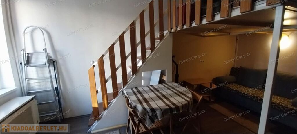 Kiadó a 13.kerületben, a Hegedűs Gyula utcában egy lift nélküli ház 2.emeletén található, 30 négyzetméteres, 1 szobás, galériás lakás. Teljesen bútorozott és gépesített. A közös költség 16.000 Ft, a további rezsi 10-15.000 Ft körül szokott lenni.