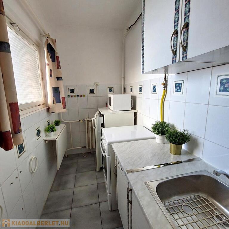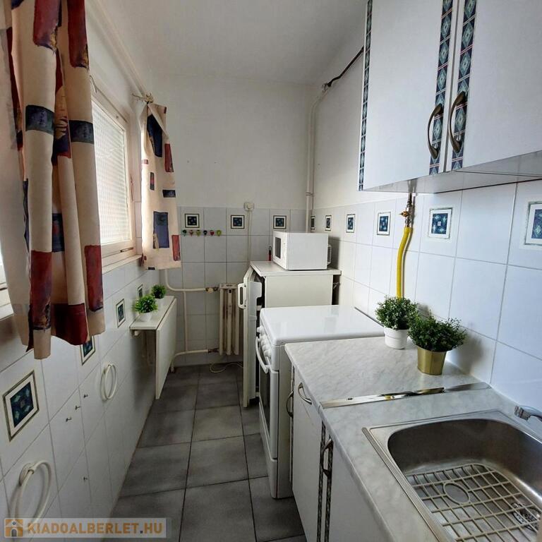 Budapest XIII. Újlipótváros Vág u.ban,  szigetelt panelház legfelső, 10.emeletén 36nm.-es 1 szobás bútorozott és felszerelt lakás minimum egy évre kiadó.