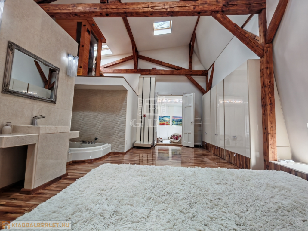 Az ingatlan éke amitől garantáltan el áll a lélegzete....a szint eltolással kialakított, 5 méteres belmagasságú hálószoba aminek a tetején ablakok vannak így akár ágyból is láthatjuk a csillagos eget vagy ébredhetünk arra,hogy a hasunkra süt a nap!