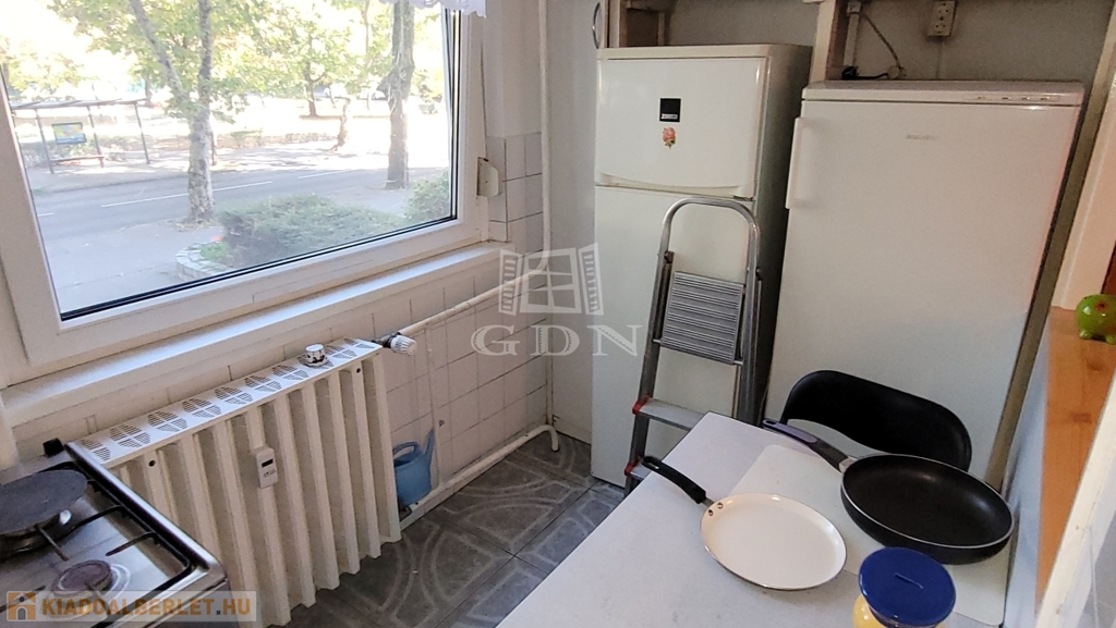 XIII. Gyöngyösi utcában, Metrótól 3 percnyire, 64 nm-es, 2 + 1 fél szobás, magas földszinti panel lakás bérbeadó.
